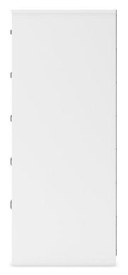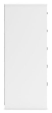 This chest of drawers has simple lines and contemporary styling, allowing it to blend seamlessly with any decor. Five spacious drawers slide easily on metal ball bearings and can be used to keep your clothes neat and organized. Sleek metal pulls in a brushed nickel-tone finish add to the streamlined aesthetic. Combine with other units in the collection to create a room that’s smart and stylish.