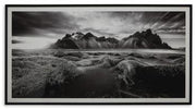 If you have your sights set on a striking landscape, this wall art is a natural wonder. Staggeringly beautiful, the framed black and white print showcases majestic mountains and a meandering stream. This moody and marvelous piece adds an air of dramatic beauty to your modern decor.